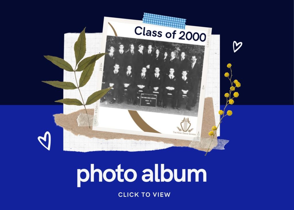 We are so happy to reconnect with you all since you graduated from King David twenty one years ago. For some of you it is even longer as we have included our Primary School graduates in this reunion too. The Class of 2000 holds a special place in our hearts as the first graduating VCE class of KDS. We hope you enjoy reminiscing about old school days by exploring this page. Please register your attendance by leaving a message on the message board below. You can upload photos, share memories, let everyone know what you are doing now or ask a question.