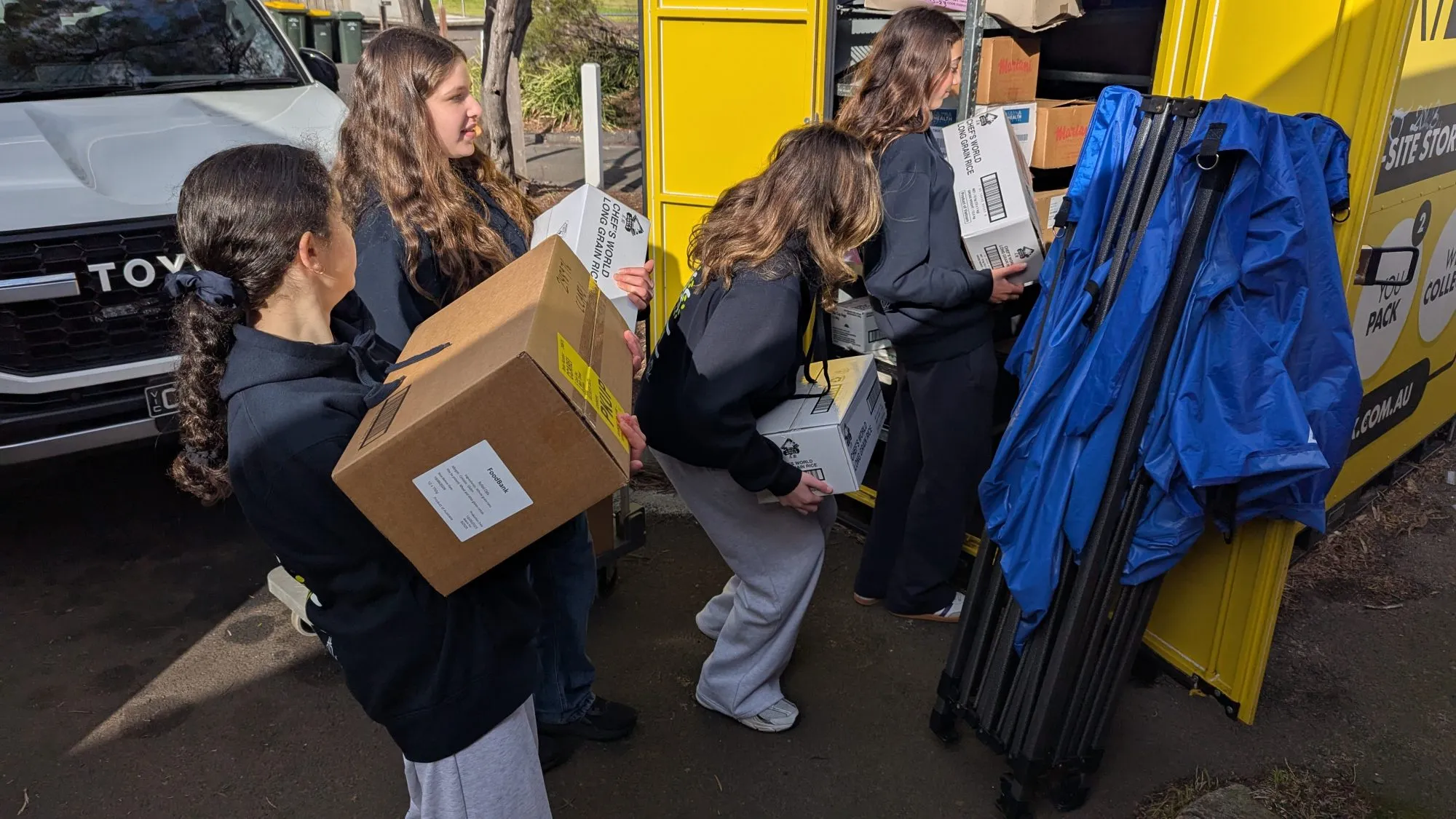 Across south-east Melbourne students help different charities distribute food to people in need.