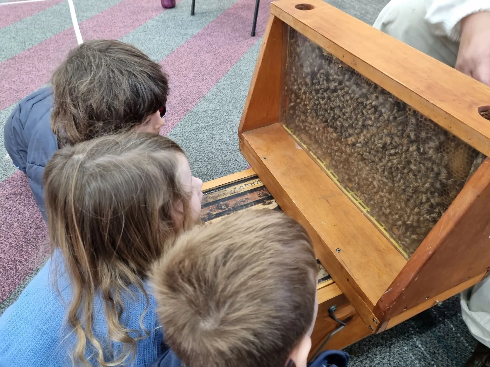 This week, as part of learning about Rosh HaShanah, the ELC had a bee incursion with Fiona Marantelli. Fiona is a Bee Keeper of five hives, and she engaged us with an interactive program. She showed us her uniform, the tools she would work with at her hives, and real bees in a hive. We even got to see the Queen Bee and looked through special lenses to give us an insight on how bees view their surroundings! When asked what they enjoyed most, they replied: