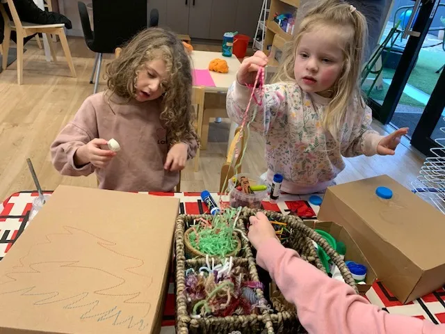 If you wander around the Gan Rimon kinder room, you will see an area set up called the Loose Parts corner containing boxes, lids, pipe cleaners, wool, sticks, toilet rolls, egg cartons, bubble wrap, feathers, buttons and other natural materials. As early childhood educators, we know the power that loose parts play in unleashing creativity and encouraging problem-solving. We also know that the learning environment is enriched when children can explore open-ended materials.