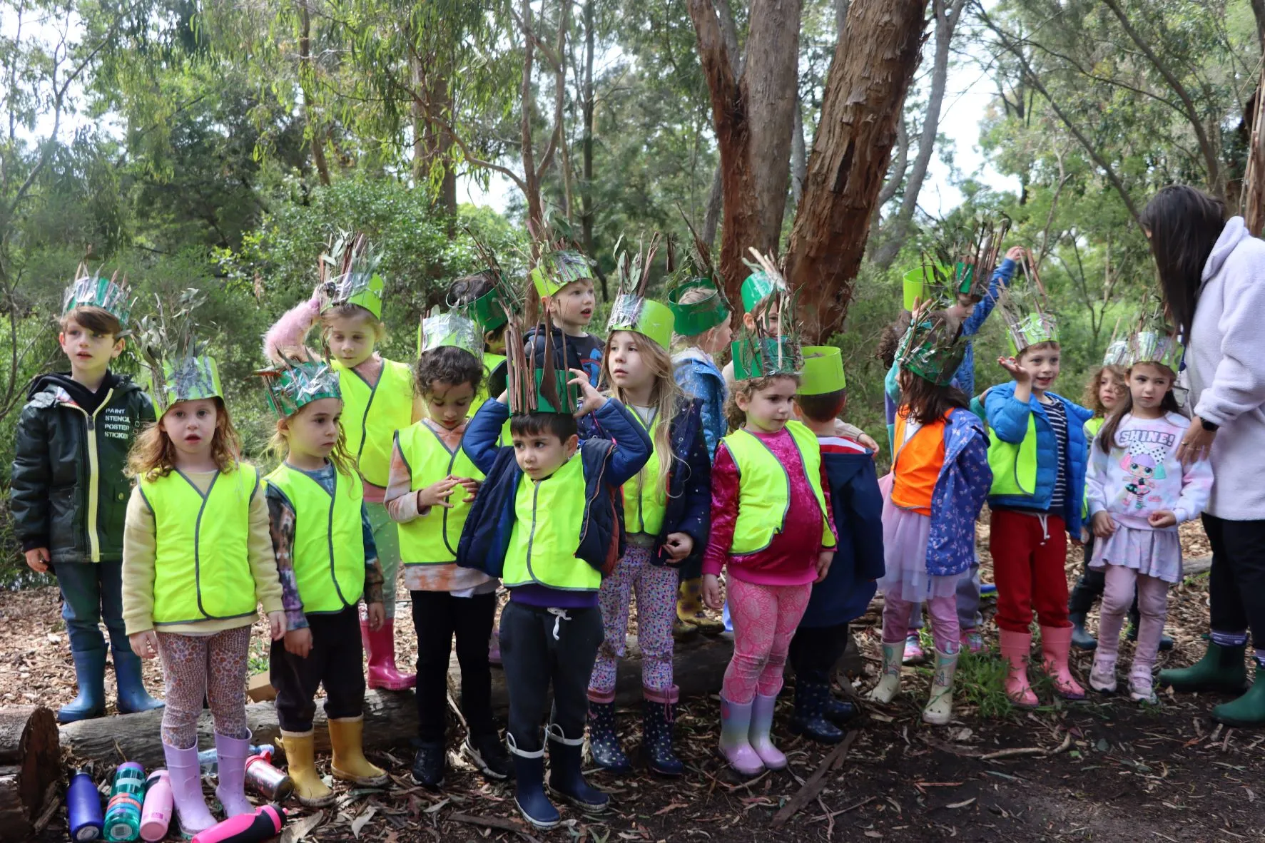 With Bush Kinder (Gan Tevah) being such a highlight this year for our Senior Kinders, our educators initiated a wonderful end of year celebration there. The children and their families spent the morning in the Urban Forest, singing well-loved songs learned during the year and exploring the beauty around them. Thanks to the recent rain, there were puddles to jump into (luckily the children had their gumboots!). The gratitude stones which the children painted on during the term and left today in Gnomes Ville will hopefully spark the curiosity and imagination of others who will also venture into the forest to explore!