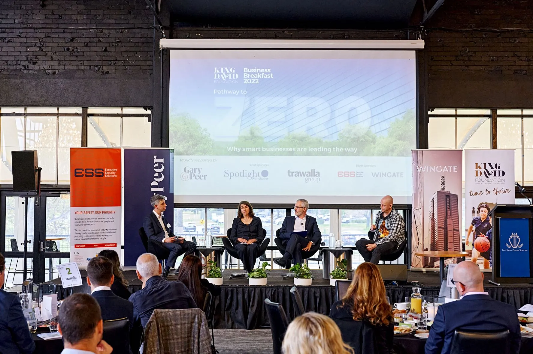 A fascinating lineup of speakers contributed to our excellent Business Breakfast on Thursday, hosted by the King David Foundation. With the theme 'Pathway to Zero', the panel discussed how businesses can take advantage of the transition to a carbon-free economy. From updated building standards for new builds, to utilising bacteria in new ways, to the possibility of future financing being linked to climate change response plans, we explored how businesses can not only create climate change solutions but benefit from them.Thank you to our moderator extraordinaire, KDS parent and CEO of Boundless Earth, Eytan Lenko, and our panelists Stan Krpan (Solar Victoria), Anna Skarbek (Climateworks Centre) and Ben Burge (Telstra Energy) who offered their expert insights. Our gratitude to our guests and to our sponsors Gary Peer, Spotlight Foundation, Trawalla Group, ESS and Wingate for their continued support of our community. Funds raised from the breakfast will support the construction of the new Sports and Health Precinct at our Senior School. Please click here for more information about this exciting new precinct.Photo by Dean Schmideg