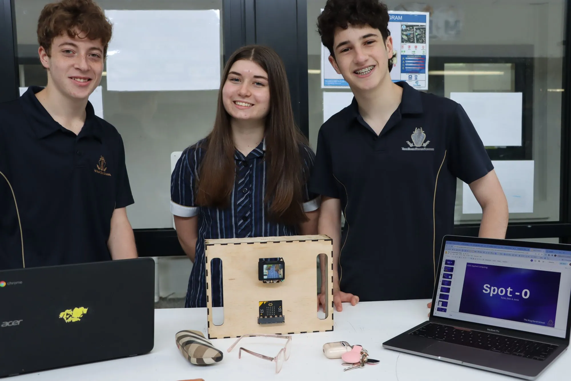 Eden, Dylan and James developed 'Spot-O', a solution for finding items commonly misplaced by people in aged care settings, including eye glasses, keys and wallets.