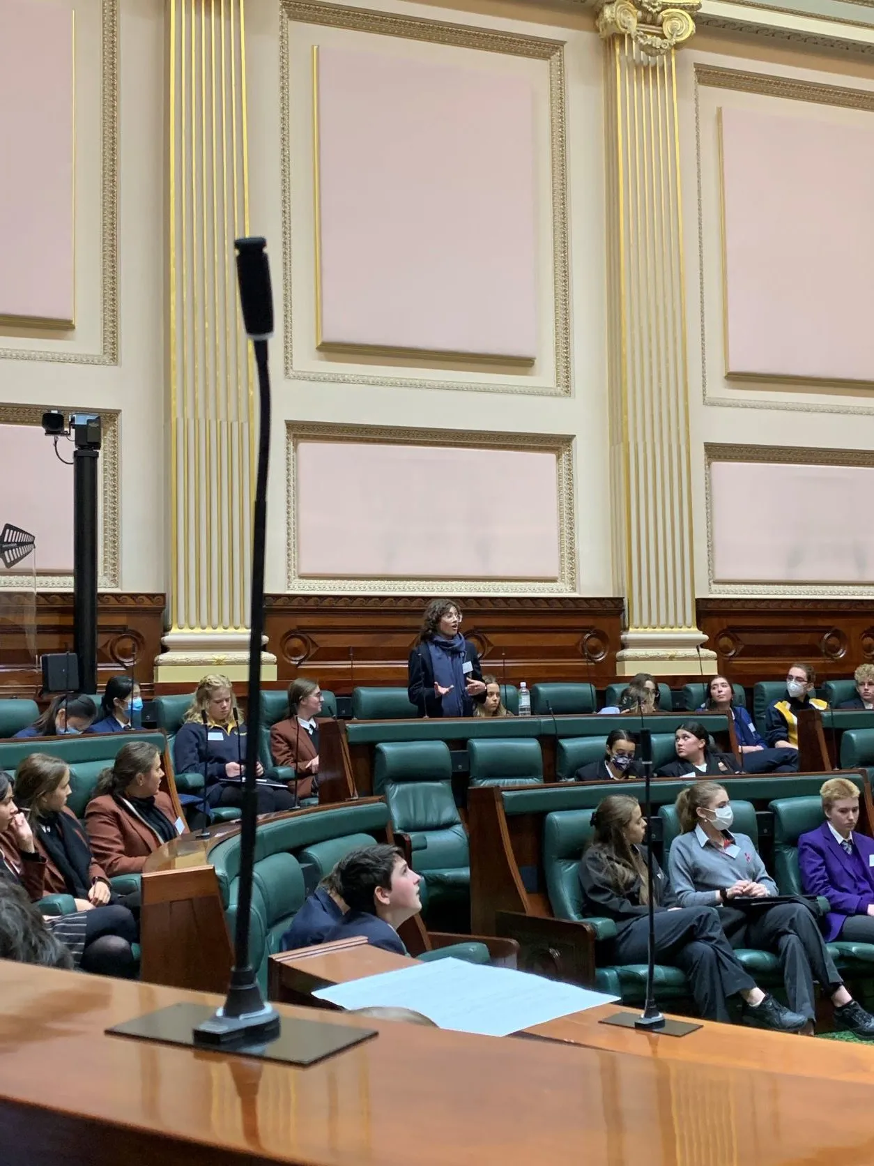 This week, Year 10 students Tash Freiberg, Ella Simons and Liv Lazarow attended the Secondary Schools Parliamentary Convention at Parliament House. Students from around Victoria learned about the rules of the legislative chamber before debating the mock proposed bill to continue judge alone trials for indictable offenses post COVID-19. Ella Simons provided the opening statement for The King David School, arguing that judge alone trials should not continue. Students heard from Associate Professor Jacqui Horan, Law Faculty at Monash University as well as Dr Felicity Gerry QC, Professor of Legal Practice, Deakin University who both argued that the 12 perspectives of Jurors mean that trials will be less affected by bias than judge alone trials.All three King David students spoke passionately on the topic during the soapbox, showcasing their extraordinary public speaking skills and their ability to propose new arguments. The mock bill did not pass, with the overwhelming majority of students voting to not retain judge alone trials.It was a wonderful day of learning the joys and difficulties of debating proposed legislation in the actual chamber where Victorian legislation is proposed.