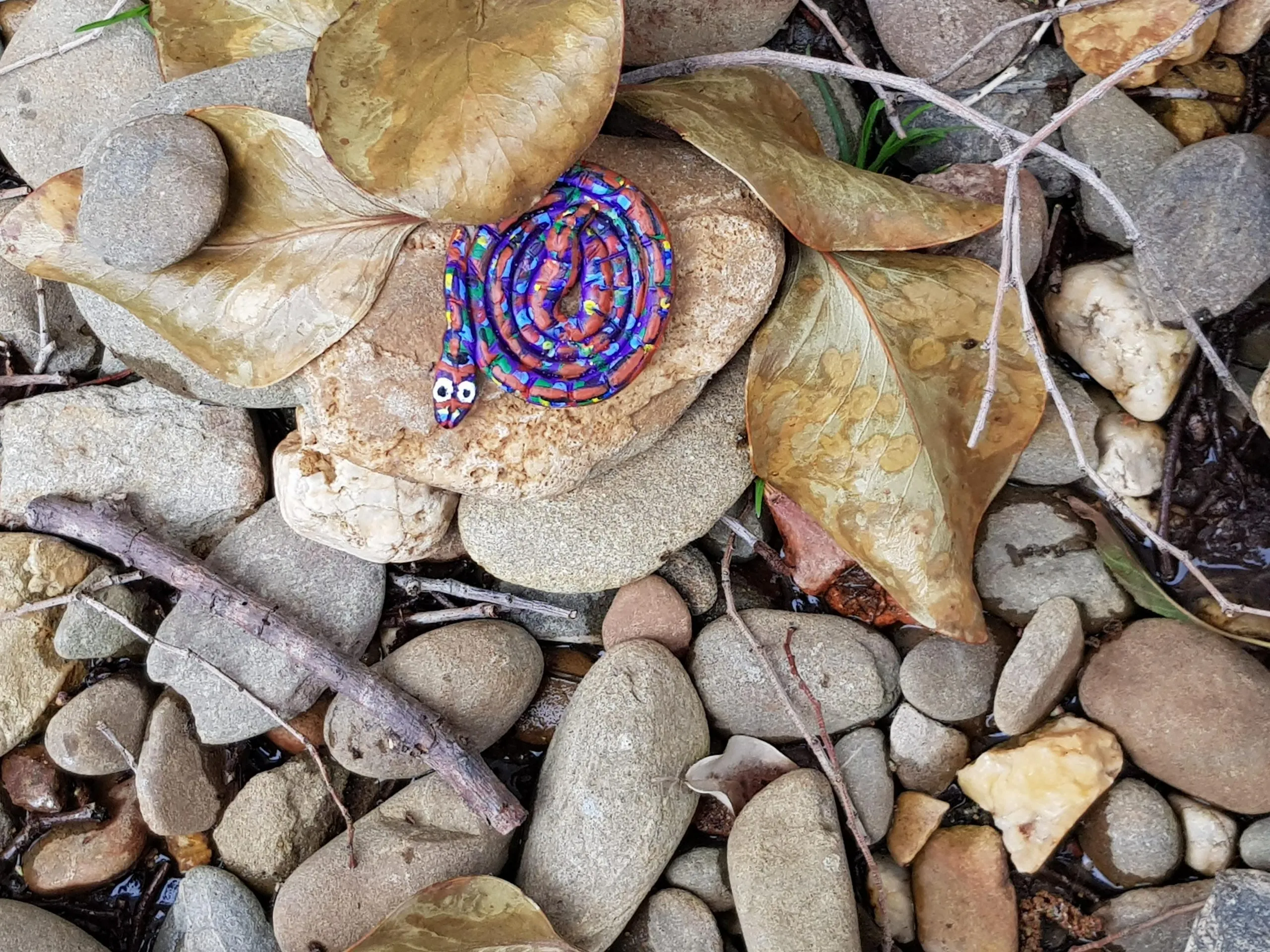 The Preps recently finished a three-week art unit on modelling – and instead of clay, we all made our own salt dough! The students met online with all their ingredients ready and enjoyed mixing and kneading the dough, then experimenting with different tools (forks, pencils, whisks and whatever was at hand) to see what kinds of mark they made. In their second lesson they learned how to make a snake, and tried out some different ways to arrange them, such as coiled or in an ‘S’ shape. For their last lesson they added colour and detail to their snakes and photographed them outside in a natural environment. It’s been wonderful to see all the photos of their beautifully-decorated snakes in the grass!