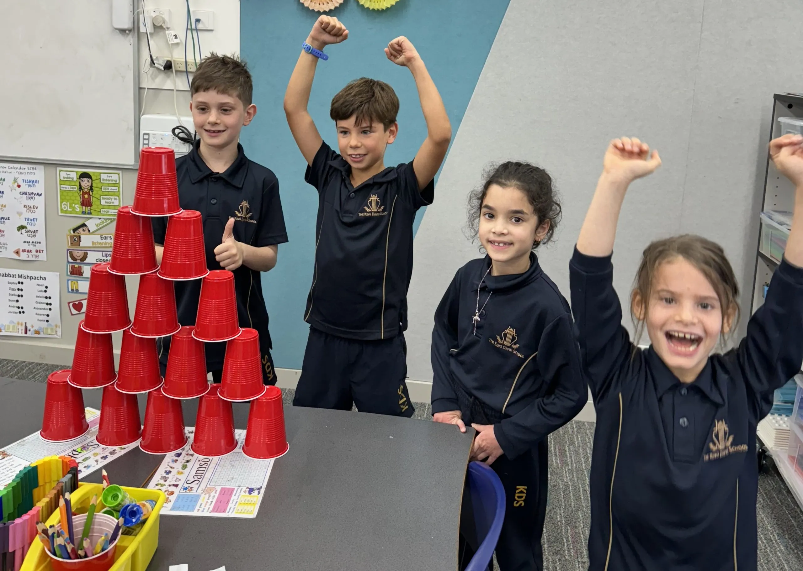4. Cup stack - using 15 cups, students needed to stack and then unstack a pyramid of cups
