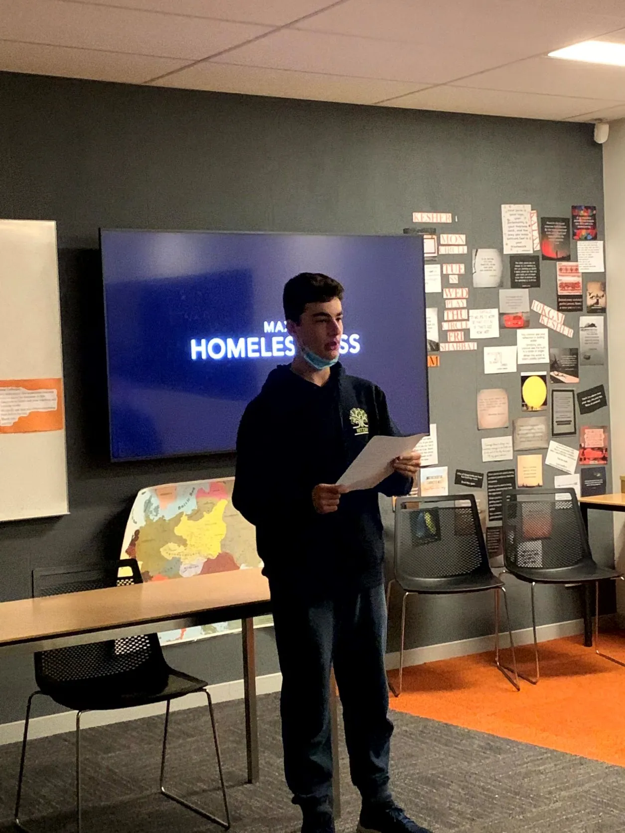 Our Year 9 Nitzan students shared their social action projects with their families at the Social Action Expo on Wednesday night. Throughout last term, students explored big concepts such as homelessness, food insecurity, genderequality, human rights, and sustainability. The Expo was their chance to share their artisticresponses to the social issue that means the most to them.The Senior School was buzzing with activity as the crowd of parents moved from exhibition room to exhibition room commenting on the projects on display.Among the exhibits, families saw artin response to the Russian invasion of Ukraine made in collaboration with Chinese dissident artist Badiucao; student documentaries on depression and on the recent overturning of Roe vs. Wade; an anti-corruption animation and high fashionmade from fast fashion packaging. They explored the social media campaign 'Dispayrity' about the gender pay gap, and heard spoken word on vulnerability and homelessness made with the guidance of the poet Ren Alessandra.Students emphasised how Nitzan had helped them see the humanity that we all share. They stressed the importance of opening up about feelings and talking about issues, and how Nitzan had taught them perseverance.The new mural outside the MPR was also unveiled, with students explaining that it references the beauty of nature and the threat of environmental instability.As Fred Kok said, "Nitzan is the most transformative program I've seen in my 45 years of teaching."Kol HaKavod to our students and to Jayne Wise and all Nitzan staff!