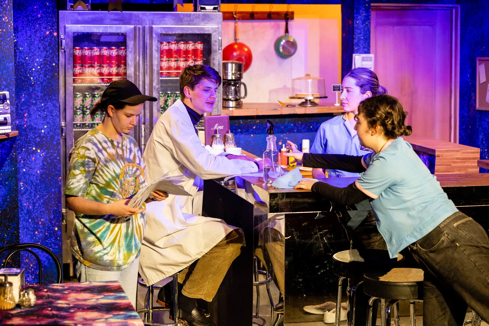 How do you squeeze 65 million years of history into approximately an hour of theatre? Impossible of course. Confronted with a global catastrophe, VCE Theatre Studies students addressed this crisis in their three performances of Darcy Parker Bruce's playAlways Plenty of Light at the Starlight All Night Diner. The set was sublime. Light and sound coloured the characters' discourse and pathos pervaded the performances.A ripper production, showcasing the amazing talents of our students. Edgy and highly entertaining. Well done to Year 11 students Charli Cantoni-Bud, Teige Cordiner, Shayna Epstein and Jacqui Pizzo. AndtoLaura Rickhuss for her vision and direction.
