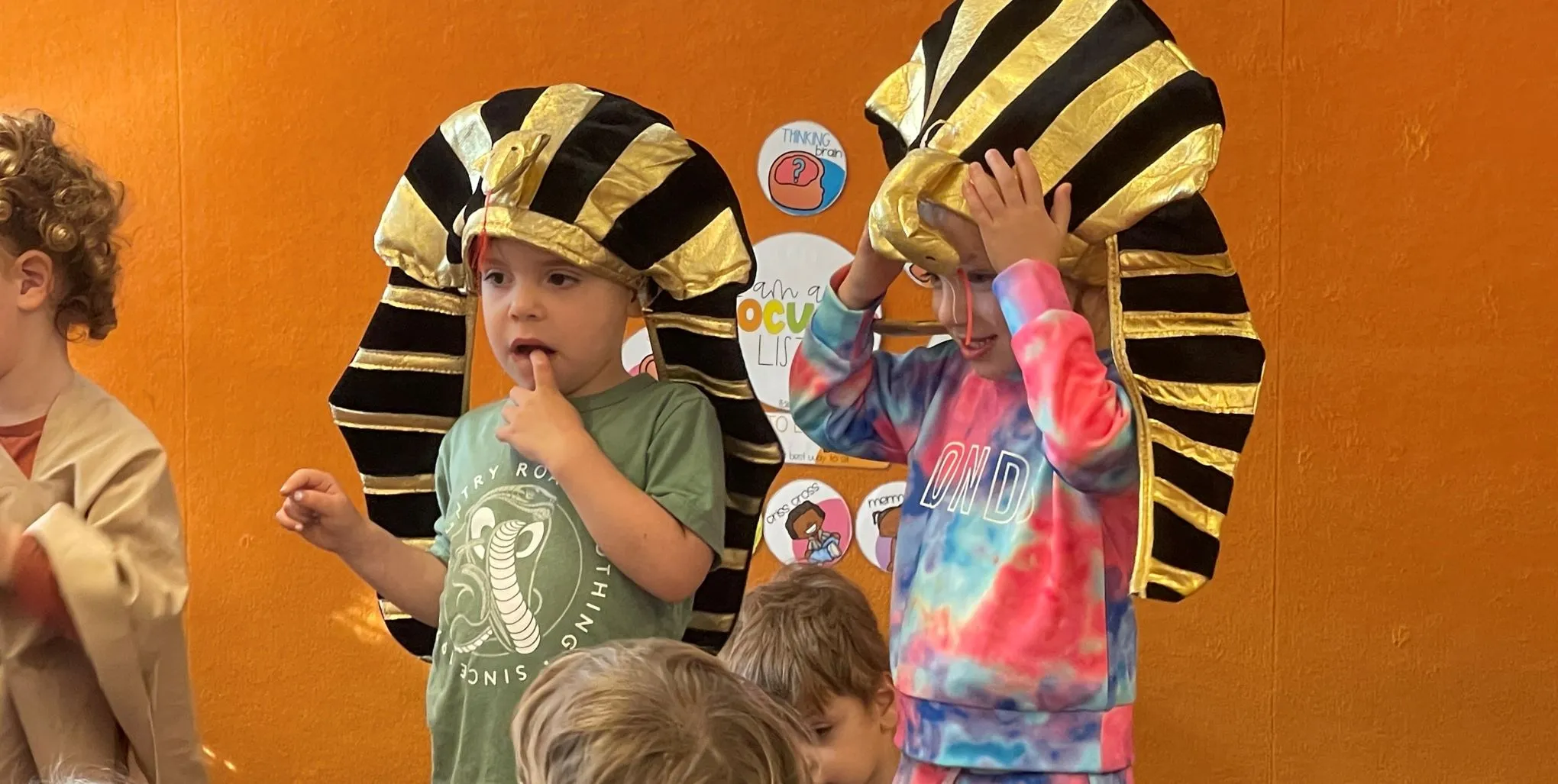 Yesterday the Junior Kinder classes, along with Pre-Kinder, joined together to participate in a very special Pesach activity. The children got the opportunity to think and learn about how the Avadim made bricks to build cities and palaces in Mitzrayimall those years ago. Tamar demonstrated how the bricks were made using mud and straw.The children also learned why we eat charoset on Pesach (to symbolize the mortar between the stones of the buildings of Egypt) and got to taste their matzah, lettuce and parsley. Below is the charoset recipe if you would like to make it at home.Recipe:About 13 pitted dates2 apples peeled and grated¼ cup Grape juiceSoak the dates in warm water for a minimum of 1 hour and mash them up with a forkAdd in the grated applesStir in the grape juiceMix all together and enjoy!We concluded with a mindfulness session. We asked the children to close their eyes and visualise the Jewish people in Mitzrayim, how they felt, tasting the salty tears going down their cheeks, the tiredness and sore muscles of their legs and arms etc. The children were able to hold the lettuce and let us know how it felt, smelt and tasted in their mouths. This was an amazing opportunity for the children to use their five senses. Like the Jewish people all came together, it was lovely for the three Kinder rooms to participate in this together!